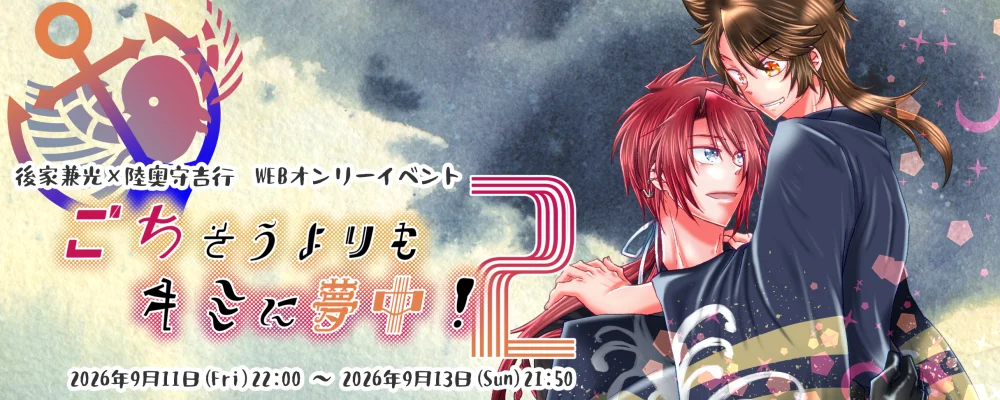 こちらは、刀剣乱舞ONLINE『後家兼光×陸奥守吉行』のカップリングWEBオンリーイベントとなります。