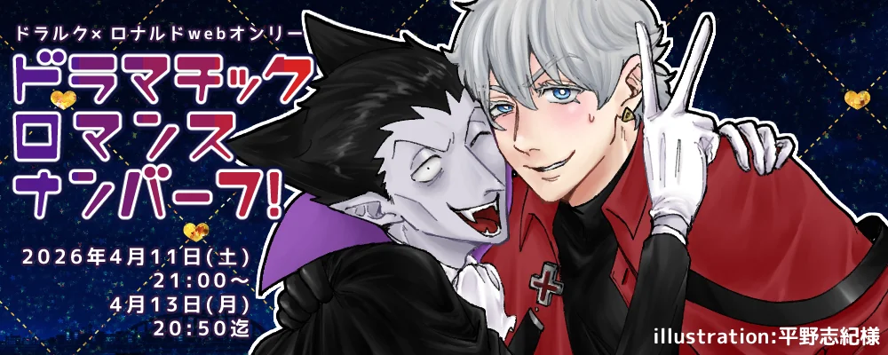 当イベントはドラルク(攻)×ロナルド(受)のオンリー企画となりますため、攻め違い・受け違い・リバ・モブ攻め・逆カプが含まれる作品を会場内で作品公開、直にリンクすることはご遠慮ください。